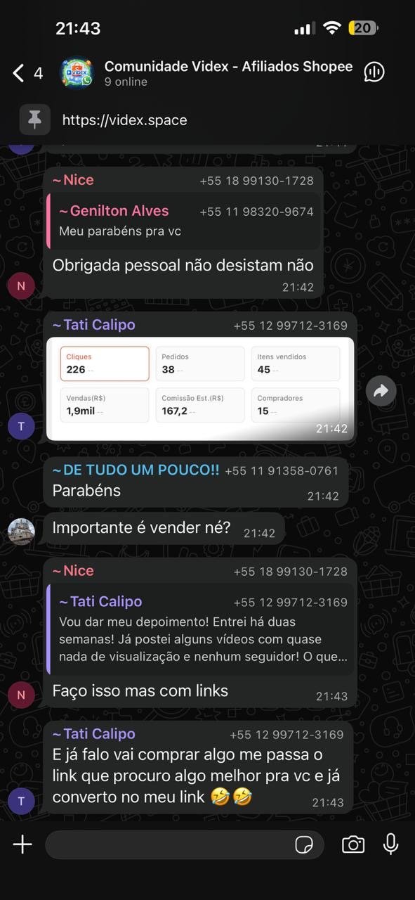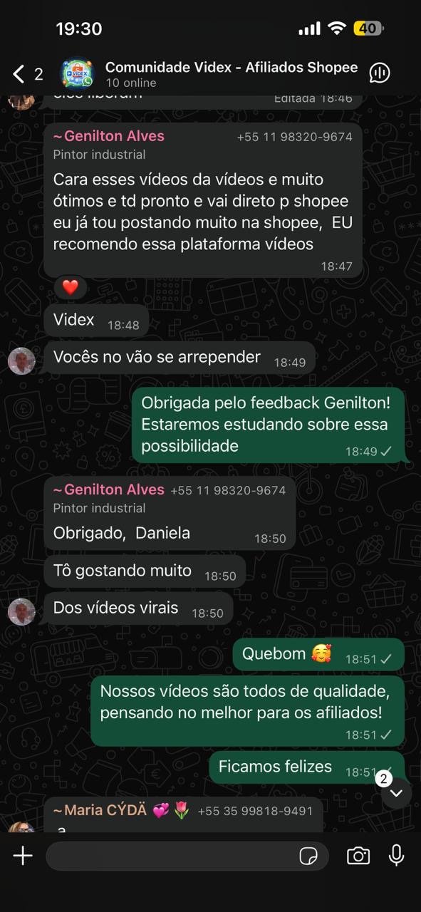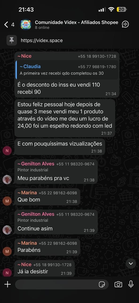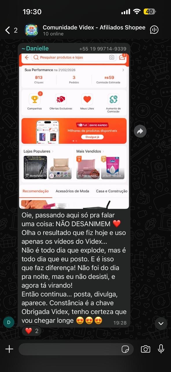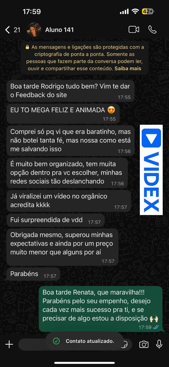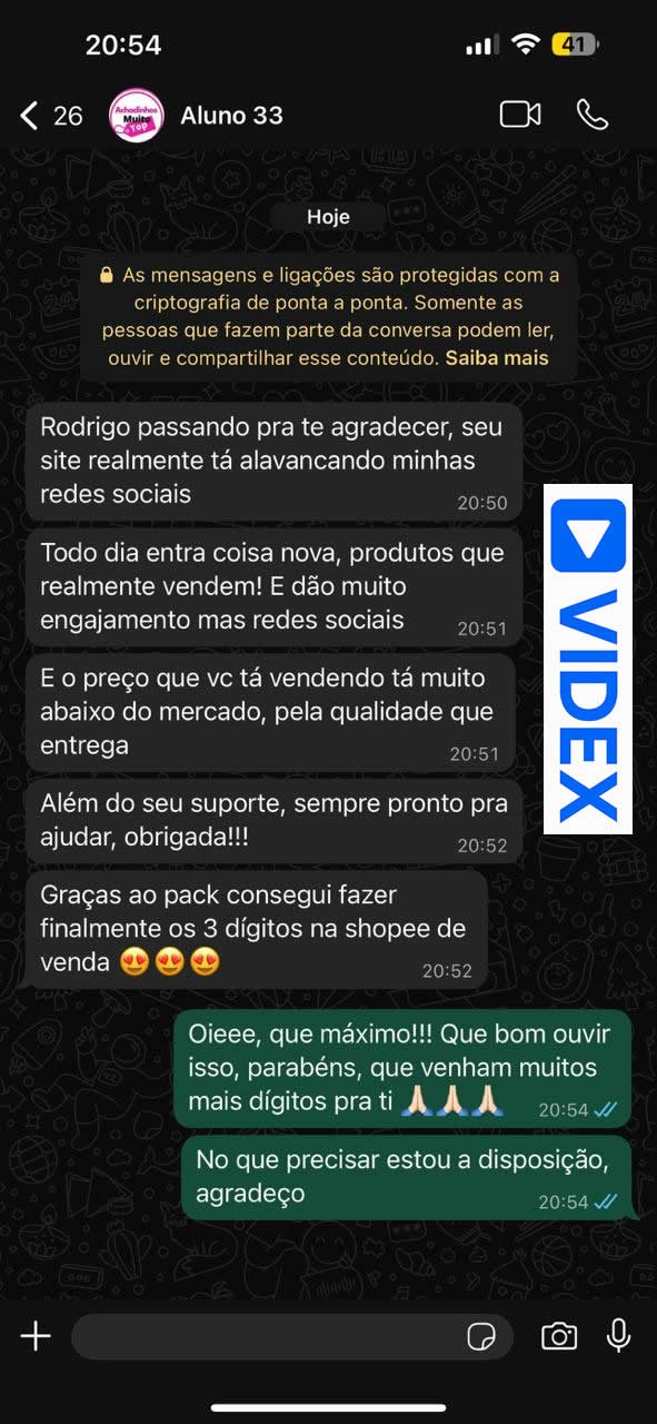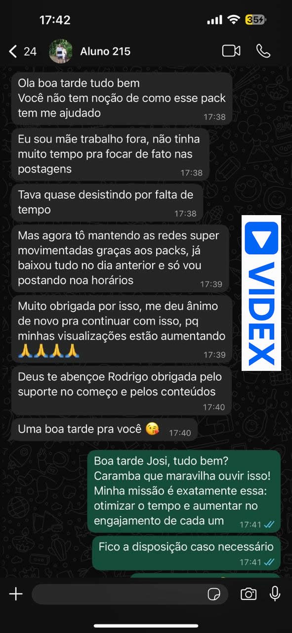 "Em 2 dias já fiz 14 vendas usando só vídeos do Videx!" — Mariana S.